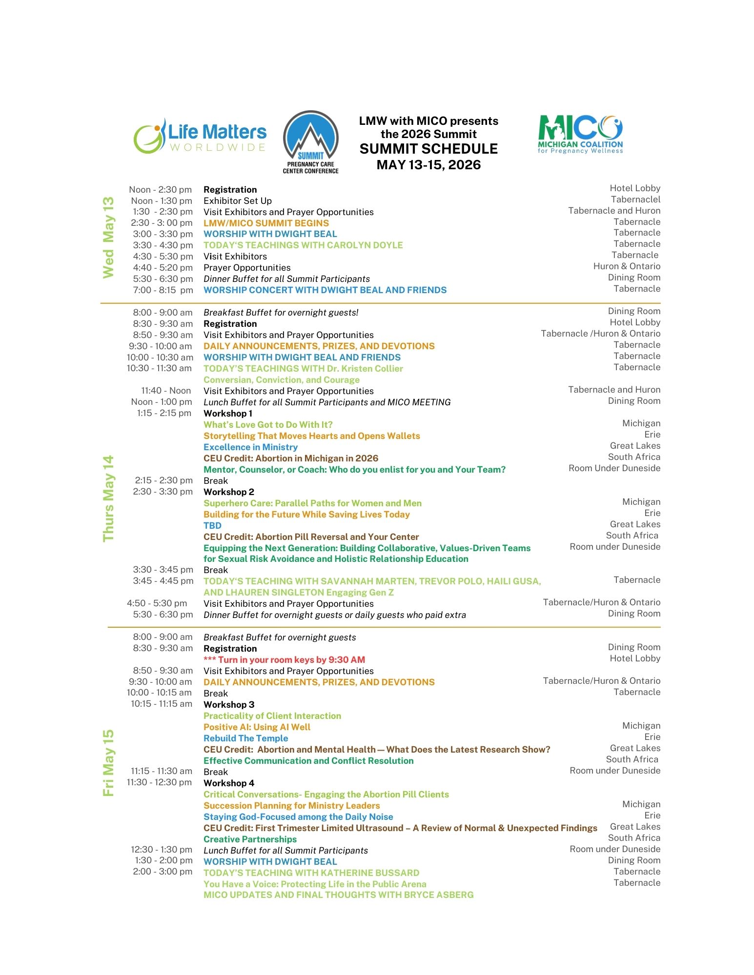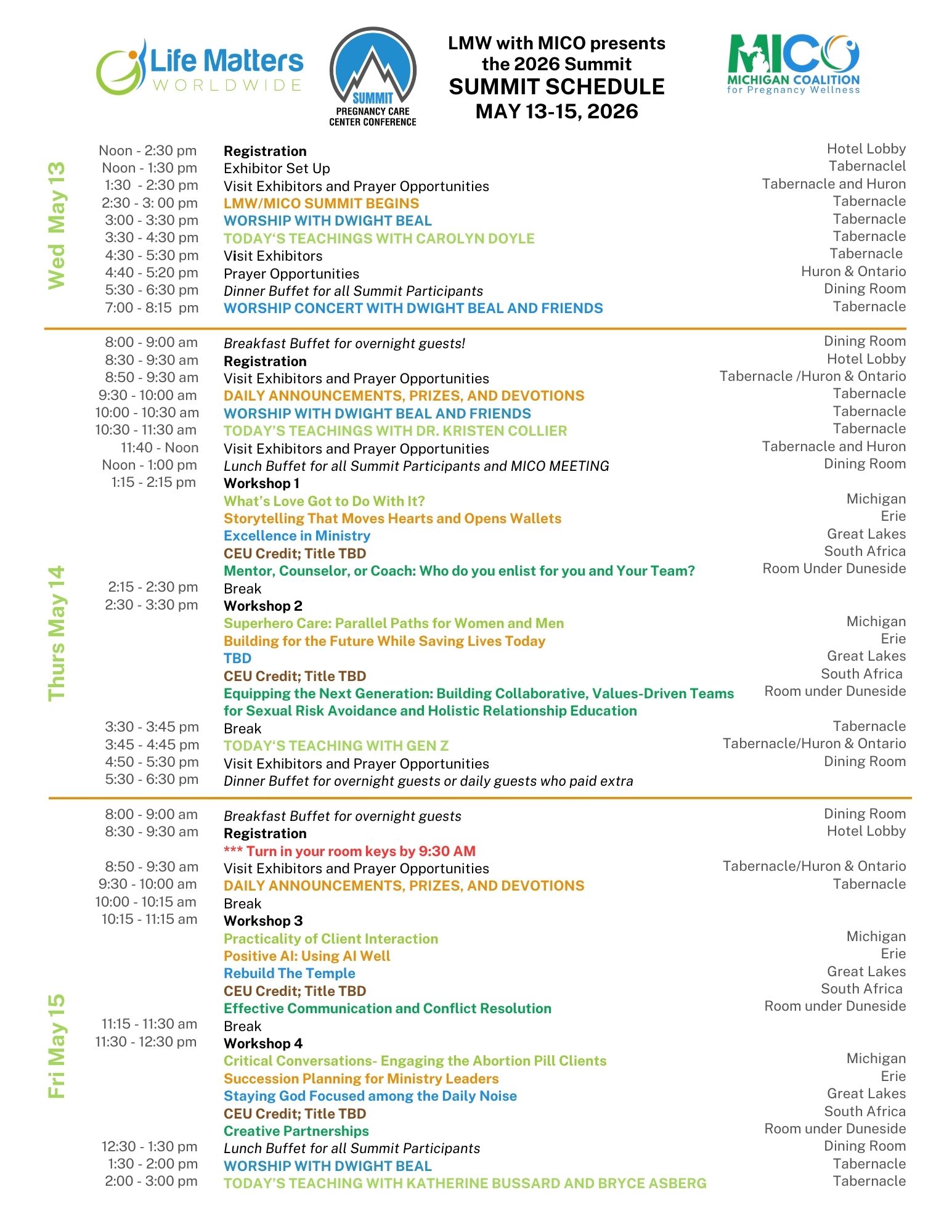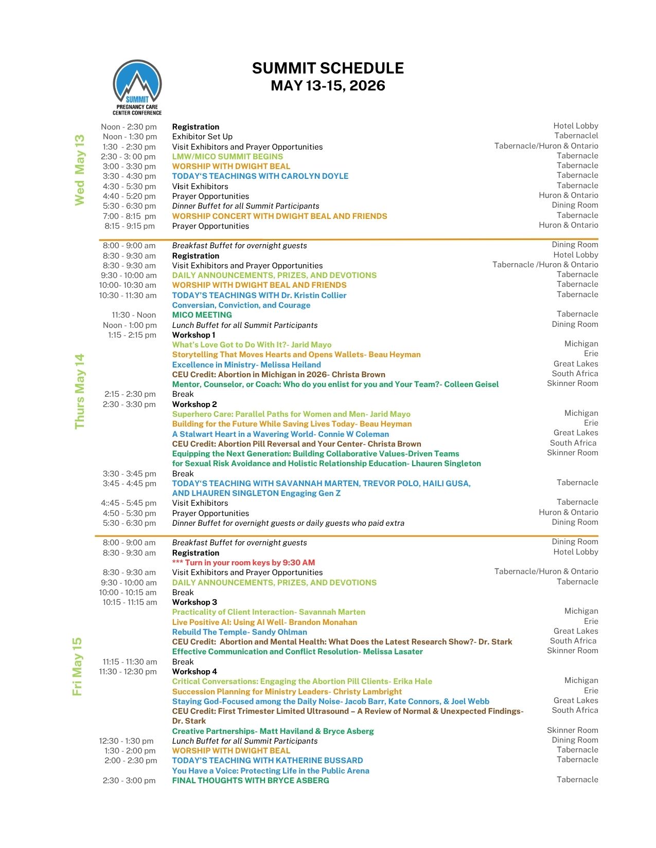 The emotional, spiritual, and professional health of pregnancy care workers has never been more critical. We believe no pregnancy care worker should do their lifesaving work feeling overwhelmed, ill-equipped, unsupported, or disconnected. The SUMMIT provides your frontline champion spiritual renewal, practical coaching, and invaluable community! Join us Wednesday, May 13 – Friday, May 15, 2026. Registration is OPEN! Register Now!